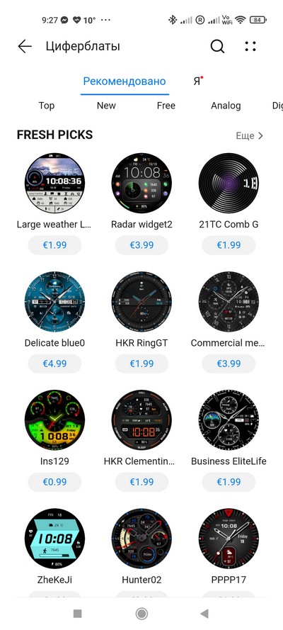 Магазин циферблатов. По умолчанию там выводятся платные циферблаты, однако если перейти в раздел бесплатных, то там тоже не одна сотня вариантов, среди которых наверняка можно найти подходящие.