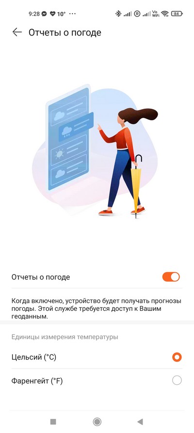 В настройках настраивается режим работы экрана, виджеты, появляющиеся при свайпе от циферблата, режим работы постоянно включенного экрана и так далее. Также в настройках к часам можно подключить беспроводные наушники/гарнитуру, чтобы слушать музыку прямо с часов.