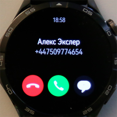 Входящий зконок. Его можно сбросить, принять прямо на часах, ответить предустановленным сообщением по SMS.