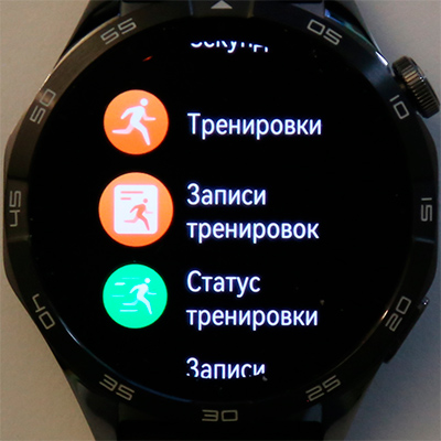 Тренировка. Там можно листать свайпом вверх различные окна с информацией, отслеживать свое местоположение с компасом.