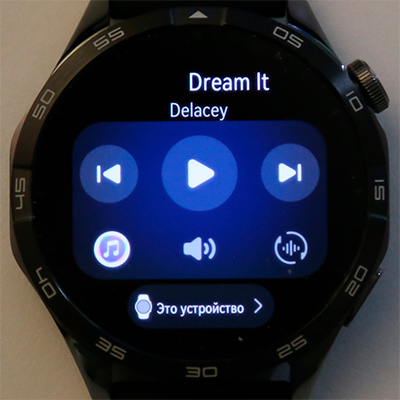 Мониторинг и управление музыкой. Часы могут управлять воспроизведением на смартфоне, также могут воспроизводить аудиотреки из собственной памяти. Закачиваются они туда через приложение: вы просто можете выбрать нужные треки для закачки в смартфоне, и они закачаются в часы по беспроводной связи. Также вы можете подключить к часам беспроводные наушники для прослушивания аудио.