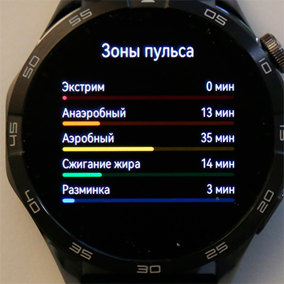Сначала я тестировал часы в режиме самой полной загрузки: включен мониторинг абсолютно всего - пульс, сон, стресс, SpO2 и температура кожи, - включен AOD, ежедневно часы отслеживают одну часовую тренировку. И даже в таком режиме часы четко вытягивали полных 4 дня, что, на самом деле, очень даже прилично.