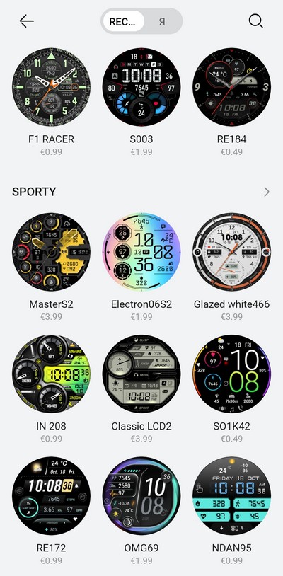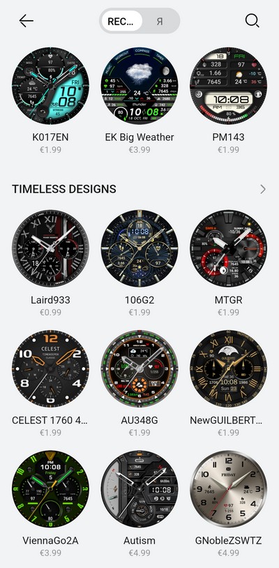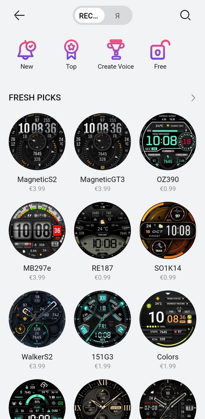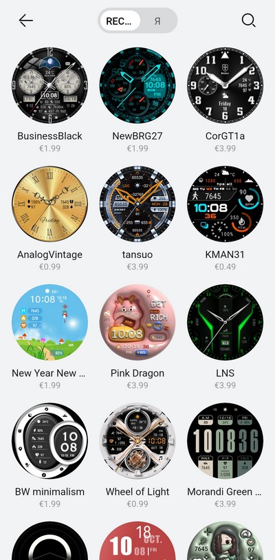 Циферблаты меняются при длинном нажатии на дисплей, в настройках часов и настройках часов в смартфоне. Выбор там очень большой, впрочем, замечу, что большинство циферблатов - платные, но у Huawei всегда так было.