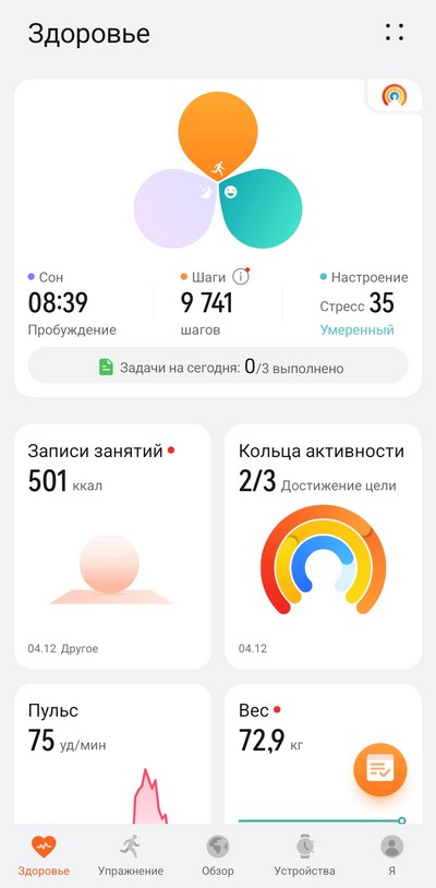 Теперь давайте посмотрим, как это все выглядит в приложении Huawei Health.