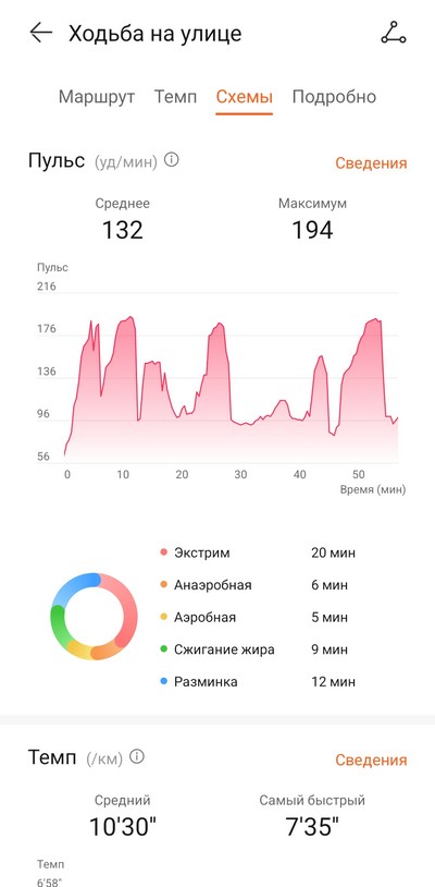 Пульс и подробности. С пульсом здесь часы явно налажали (у меня при ходьбе максимум - 135 уд/мин), но похоже, что просто ремешок был плохо затянут, поэтому измерялось неправильно. В следующем примере, где я играл в падел-теннис, пульс определялся очень  точно - я сверял с часами Garmin.