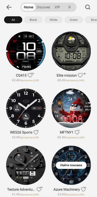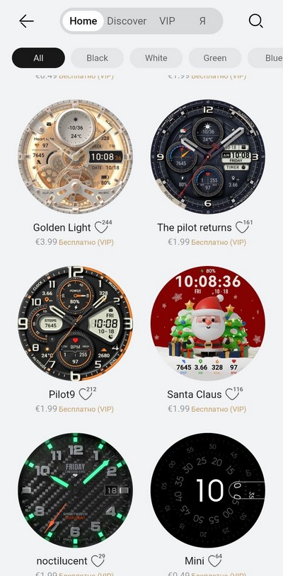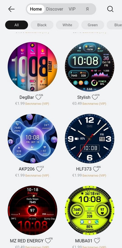 Циферблаты меняются при длинном нажатии на дисплей, в настройках часов и настройках часов в смартфоне. Выбор там очень большой, впрочем, замечу, что большинство циферблатов - платные, но у Huawei всегда так было.