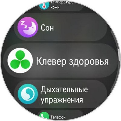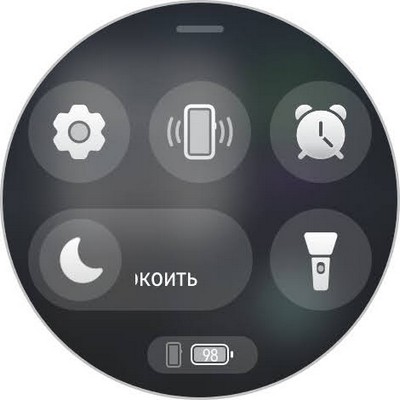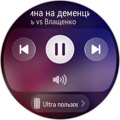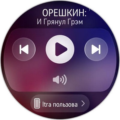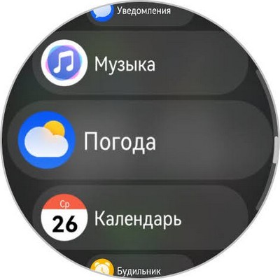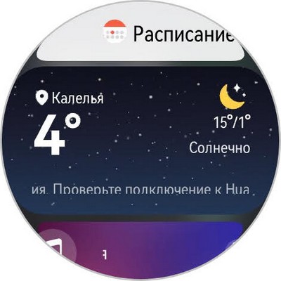 От циферблата свайп вправо - так называмый "Умный помощник". Это просто виджет погоды и виджет воспроизведения аудио.
