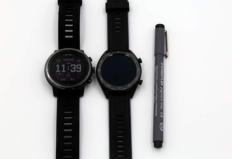Вот эти часы рядом с Amazfit Stratos и фломастером (для оценки размеров).