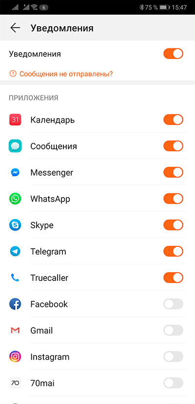 Обратите внимание, что по умолчанию тут почему-то не включены уведомления от телефонного приложения (у смартфонов Huawei это называется "Диспетчер телефона"), из-за чего даже Ведущий Мобильный Аналитик написал, цитирую: