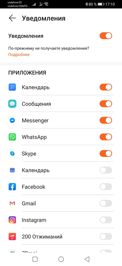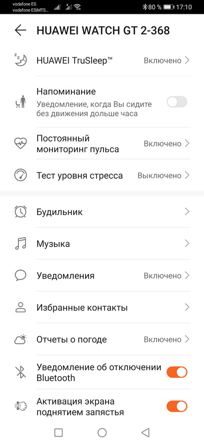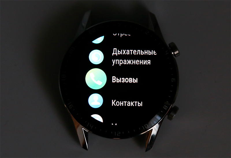 Дыхательные упражнения (для восстановления после тренировки), список телефонных вызовов, контакты (которые добавлены в приложении Huawei Health).