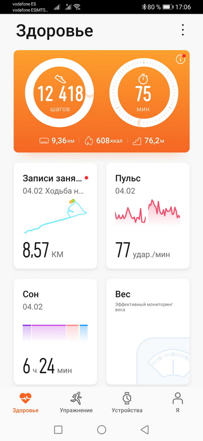 Мониторинг: сон, физическая активность, тренировки, сердечный ритм