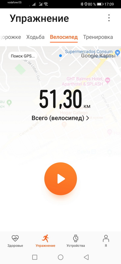 Общие данные по ходьбе и велосипеду (из того, что вообще измерялось на данных часах).