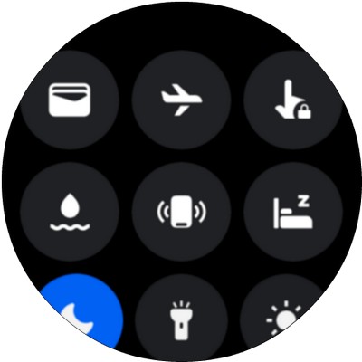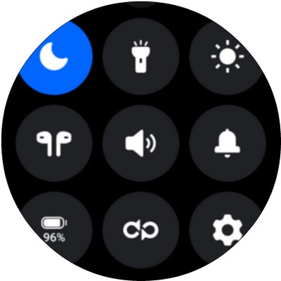 Свайп от циферблата вниз - область быстрых переключаетелей.