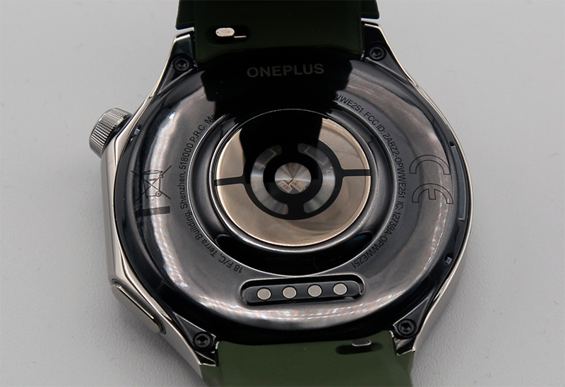 На нижней крышке часов располагаются различные датчики и группа контактов для зарядки. Крепление ремешка - стандартное, ремешок шириной 22 мм.