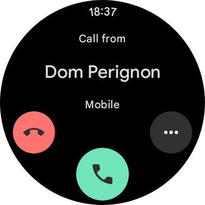 Входящий звонок. Его можно сбросить, можно принять прямо на часах. Также с часов можно совершить вызов (через телефон) - у них есть соответствующее приложение.
