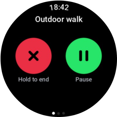 Во время отслеживания спорта свайп влево - аудиоплеер. Свайп вправо - пауза (тут есть автопауза) или окончание отслеживания спорта.