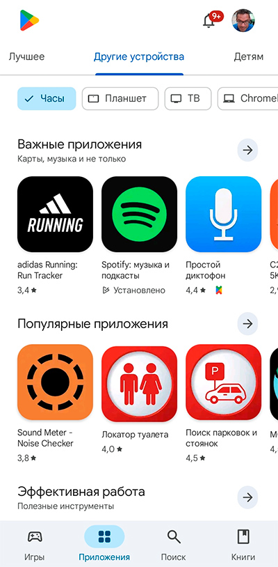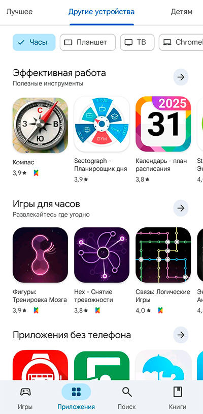 Разумеется, так как часы на Wear OS, в магазине Google Play доступны самые разнообразные приложения под Wear OS. Точно неизвестно, сколько именно приложений там находится, но по различным оценкам их там не менее 300 (это если не считать циферблаты).