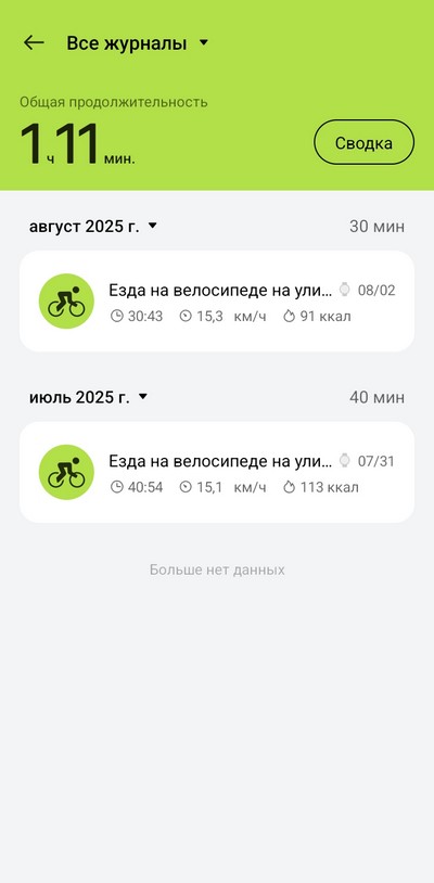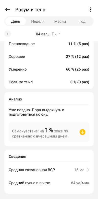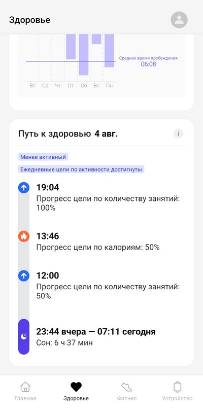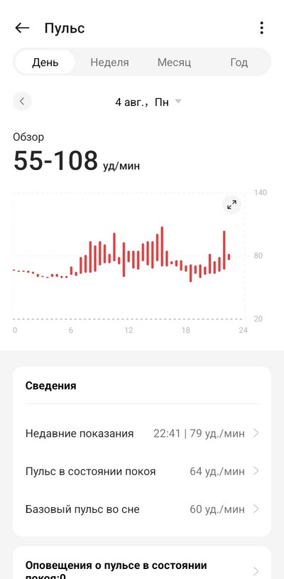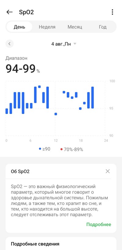 Ну и посмотрим, как в приложении выглядят сделанные на часах измерения.