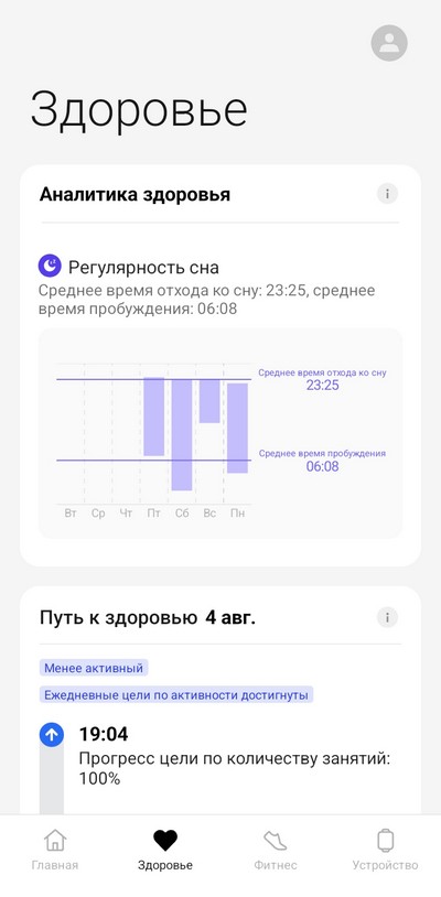 Мониторинг: сон, физическая активность, тренировки (100 видов), сердечный ритм, оксигенация крови, температура руки, ЭКГ