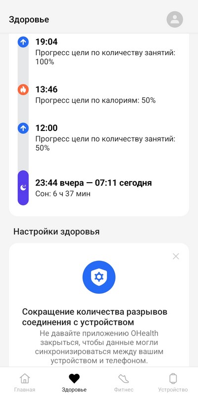 Сопряжение со смартфоном происходит стандартным образом: часы выводят QR-код, который нужно отсканировать в приложении OHealth, чтобы добавить часы на смартфон, также приложение может распознать готовые для подключения часы безо всяких кодов.