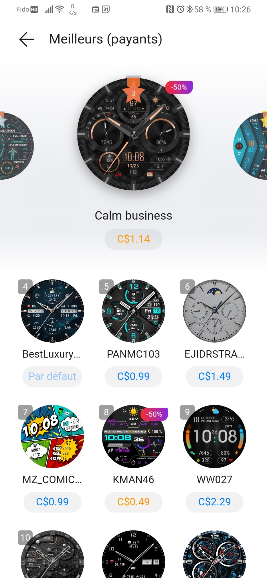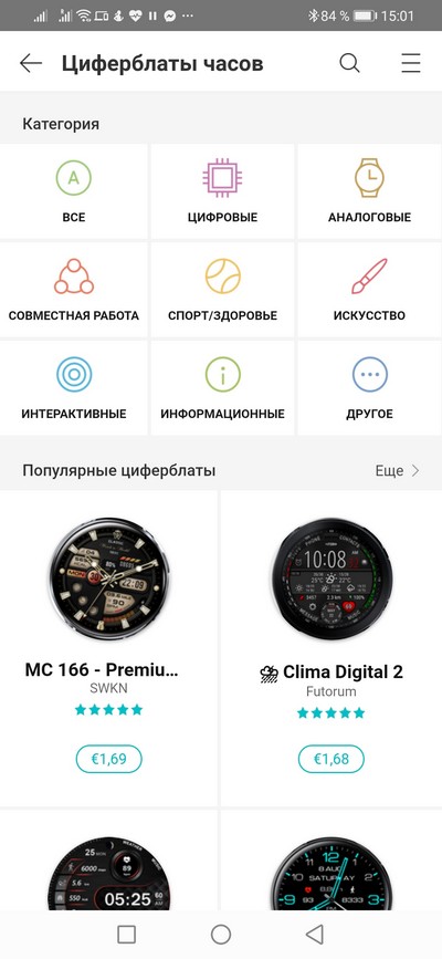 Ну и после недавнего обновления Huawei health даже в Канаде через приложение доступны тысячи коммерческих циферблатов от 0.5 доллара до 4.5 долларов