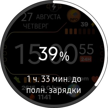 Если в часах выставлен режим постоянно включенного экрана, то при этом происходит следующее: когда на часах включен циферблат, режим AOD зависит от циферблата - у каждого он свой. (И это очень здорово, у многих других умных часов режим AOD - один на все, как, например, у Huawei Watch GT2.)