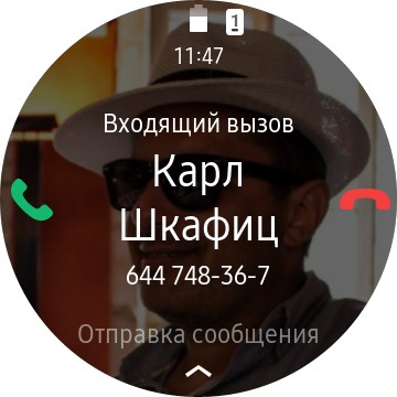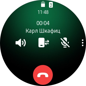 Входящий звонок, режим разговора с часов. При необходимости звонок можно перевести в смартфон.