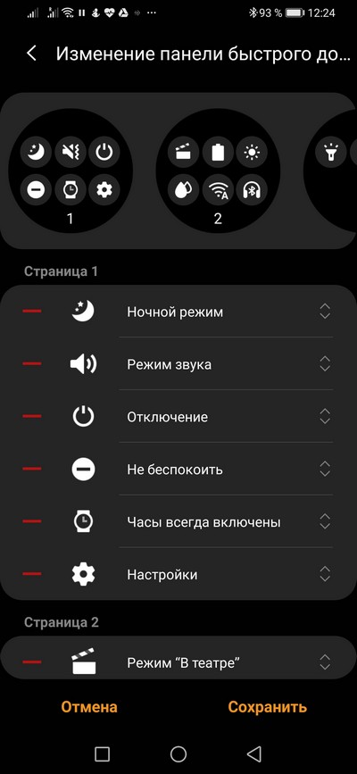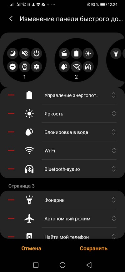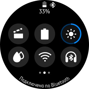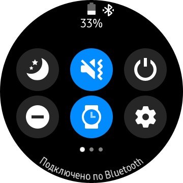 Смахивание циферблата вниз - гибко настраиваемая область быстрых переключателей, в ней три окна.