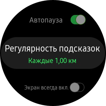 Гибкая настройка отслеживания активности: цель, экраны тренировки и их содержимое (тоже настраивается), геолокация, голосовые подсказки.