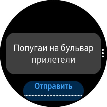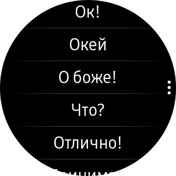 Поворот безеля вправо - уведомления, пришедшие на часы. Причем, в отличие почти от всех других умных часов, здесь на уведомления можно отвечать прямо с часов. Для этого есть список типовых ответов, который к тому же можно редактировать под себя.