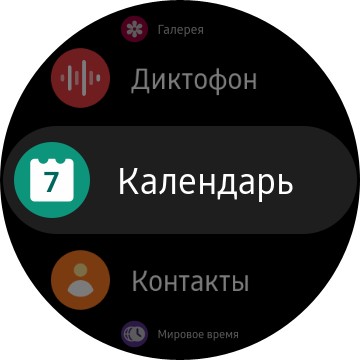 Ну и последнее из управления: по нижней кнопке при включенном циферблате появляется меню всех установленных приложений. А их, как мы знаем, может быть очень много.