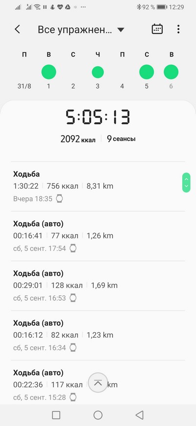 В журнале упражнений хранятся подробнейшие сведения о каждом виде активности.