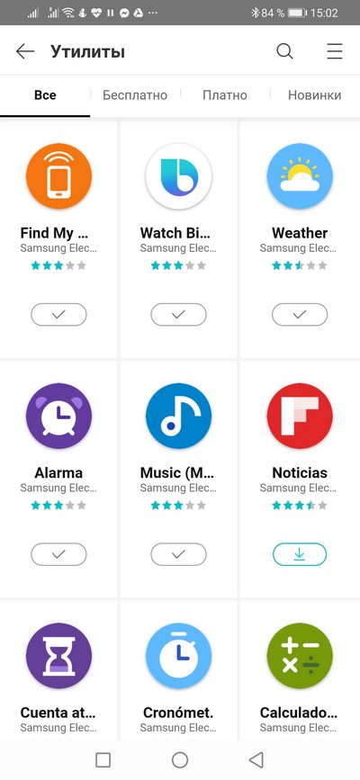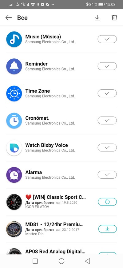 Также мне магазин показал кроме загруженных приложений все приложения, которые я в этом магазине покупал (для предыдущих часов Samsung), и предложил их скачать для новых часов.