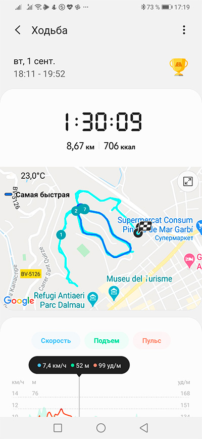 Стоп, можете спросить вы, а где же смотреть данные, которые собирают часы? А вот данные - в фирменном приложении Samsung Health (и это, в общем, логично). Galaxy Wearable - для настроек устройств, Samsung Health - для получения данных измерений различными устройствами (включая данные часы).