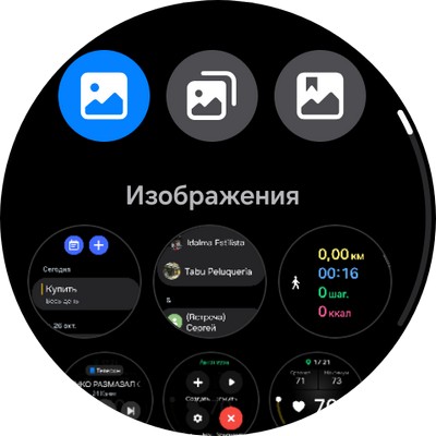 От циферблата свайп влево - виджеты приложений. Какие именно - вы настраиваете сами на смартфоне или в часах. Я ставлю сон, тренировки, шаги, календарь, напоминания, аудиоплеер (он может управлять воспроизведением со смартфона, а может воспроизводить треки, загруженные в часы).