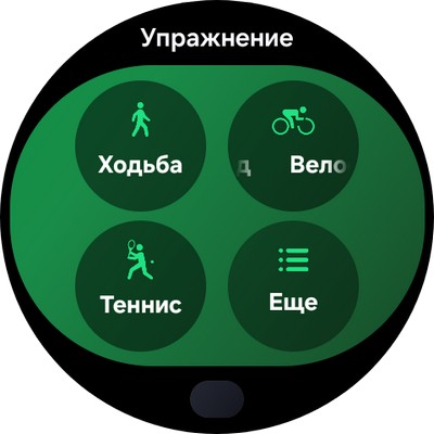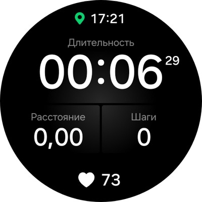 Упражнение, запуск ходьбы. Можно листать экраны с данными.