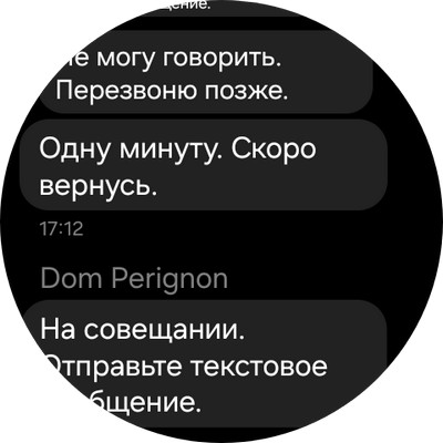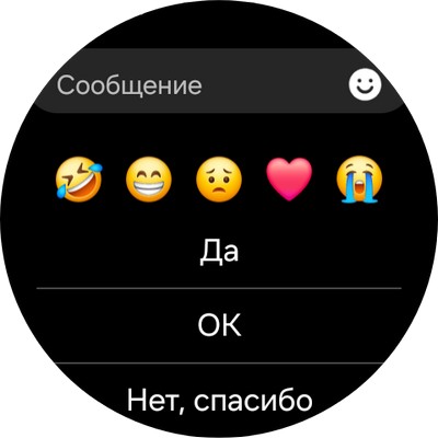 Также можно отвечать прямо с часов - текстом, смайликами, голосовым сообщением, рукописным текстом (его будут распознавать, но пользоваться таким очень неудобно, проще голосом).