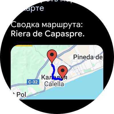Карты Google. Если на смартфоне запущено ведение маршрута, то его можно отслеживать прямо на часах, что очень удобно. Там есть и маршрут по шагам, и ведение по карте. В поездках я этой возможностью часто пользуюсь.