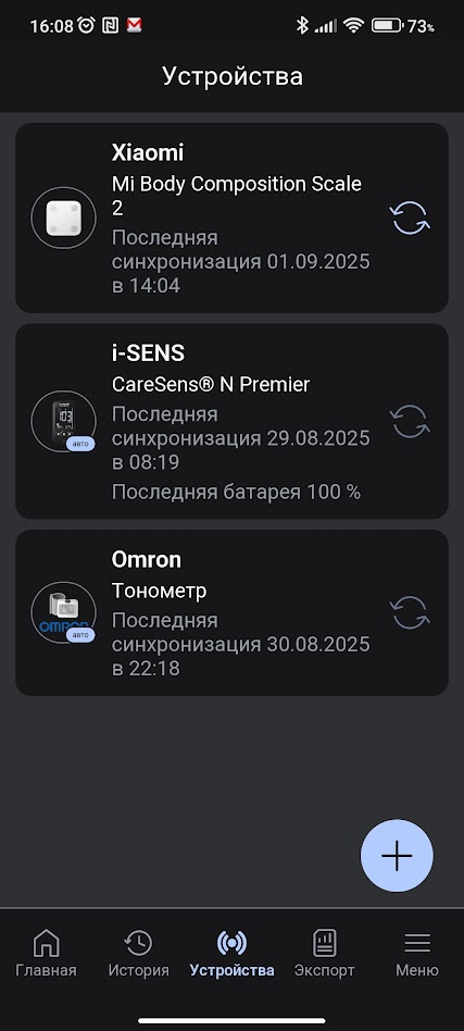 Есть приложение для смартфонов, у меня берет данные с тонометра, глюкометра и умных весов.