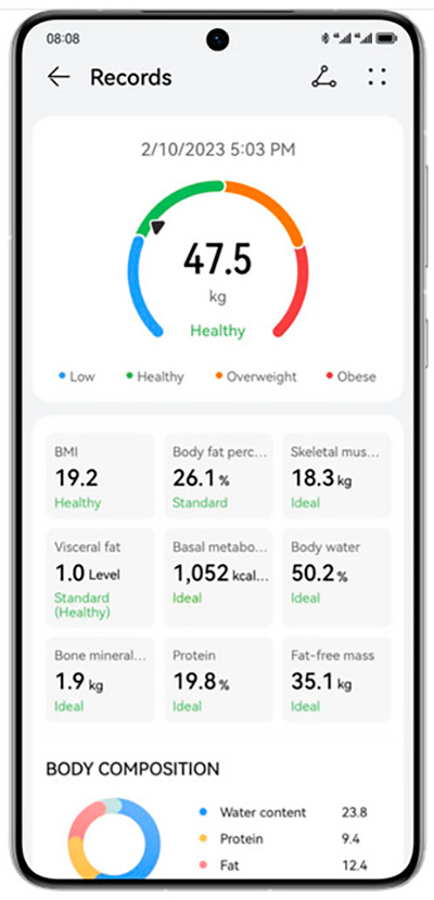 Не совсем так. У меня схожие весы - Huawei Scale 3 BLE-389 (только Bluetooth без Wi-Fi). В них каждый параметр описывается, не только BMI.