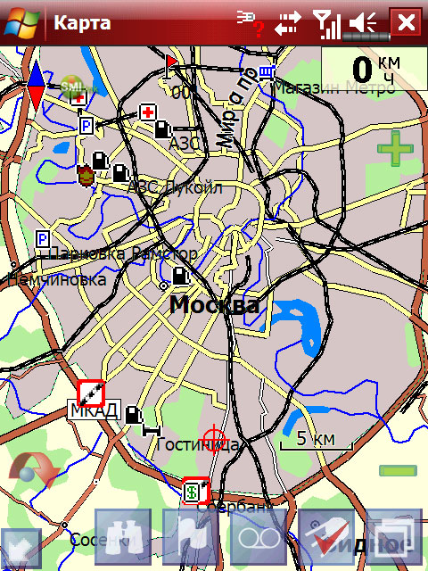 Программа умеет работать с данными о московских пробках от "Смилинк" (я их софтом пользуюсь уже несколько лет и вполне доволен), и в комплект входит ознакомительная десятидневная версия "Смилинк".
