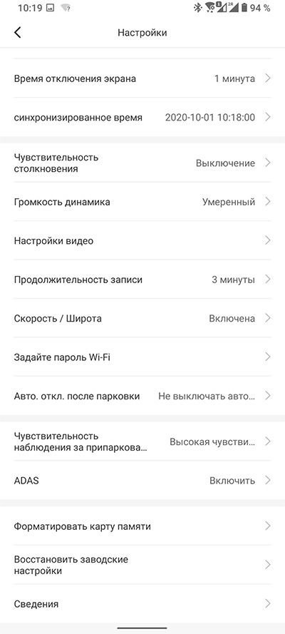 Но, впрочем, так как видеорегистратор имеет дисплей и кнопки управления, то в приложении какой-то необходимости нет вообще: ну разве что через него настройки делать удобнее, чем через видеорегистратор. Да, через приложение можно загружать ролики, сделанные на видеорегистратор в смартфон, но это очень медленная процедура, так что на порядок проще вытащить карту памяти и скопировать ролики с нее.