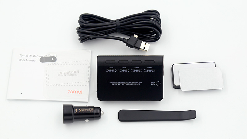 В комплекте: видеорегистратор, кабель питания USB-microUSB, адаптер для автомобиля с двумя портами, держатель с двухсторонней липкой лентой, запасная липкая лента, инструмент для снятия держателя, две защитные пленки для дисплея, инструкция.