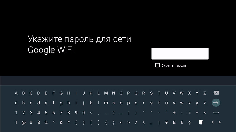 Пароль для Wi-Fi указывается через экранную клавиатуру.