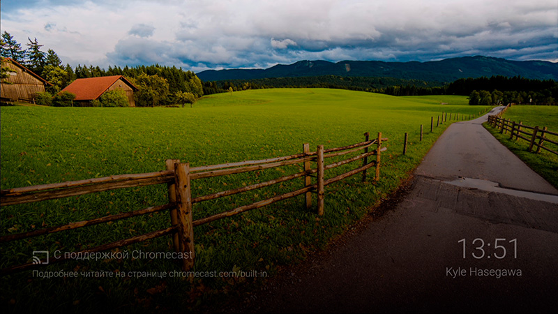 Экран блокировки, на котором напоминается, что здесь есть встроенный Chromecast: то есть вы можете с помощью этой приставки транслировать на телевизор/проектор медиаконтент с вашего смартфона/планшета, также можно делать полное зеркалирование происходящего на экране смартфона/планшета.
