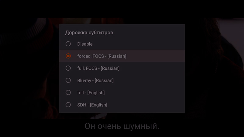 Выбор субтитров.