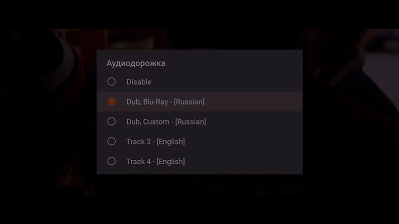 Выбор звуковой дорожки.