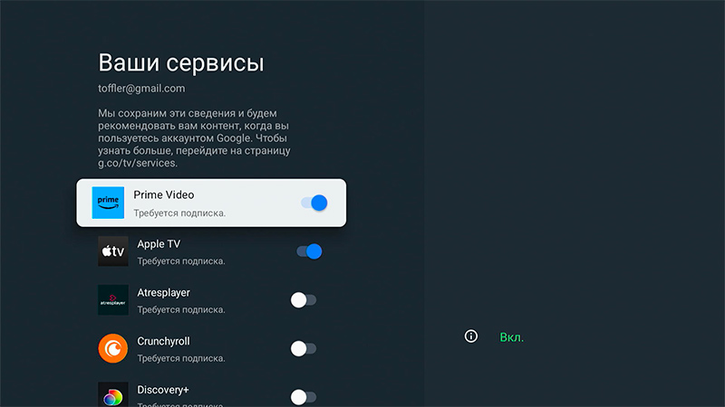 Кстати, стриминговые сервисы умеют подключаться на новом устройстве через смартфон (на нем нужно отсканировать с телевизора QR-код и залогиниться, чтобы аккаунт подключился на медиаприставке), что очень удобно, потому что не надо вводить логины-пароли через экранную клавиатуру (а у меня обычно еще и пароли такие, что через экранную клавиатуру их по полчаса вводить).
