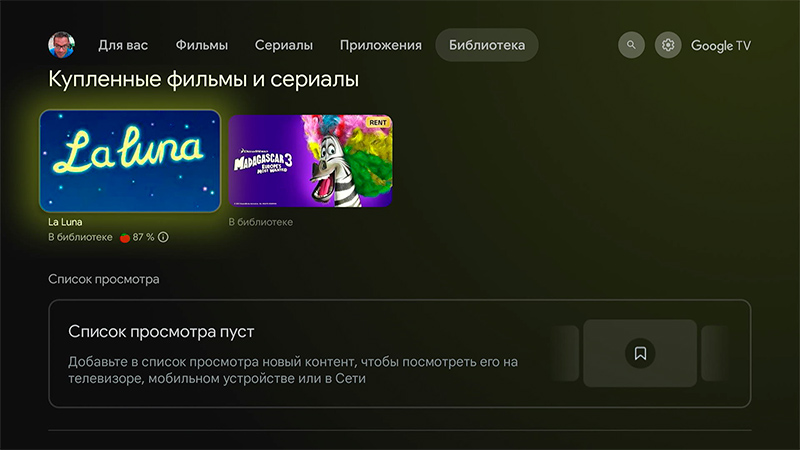 Купленные фильмы и сериалы.