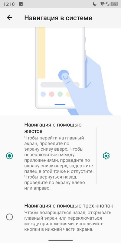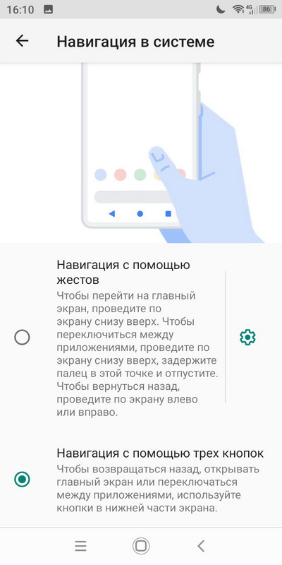 Как обычно, есть два вида навигации в системе: стандартными жестами и экранными кнопками. Чувствительность к жестам настраивается.